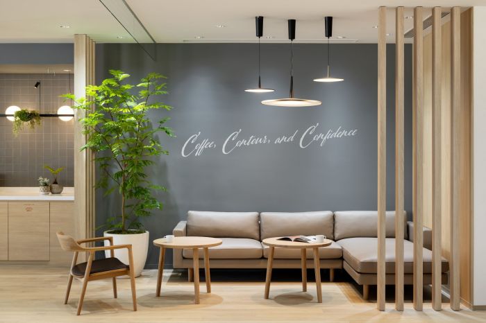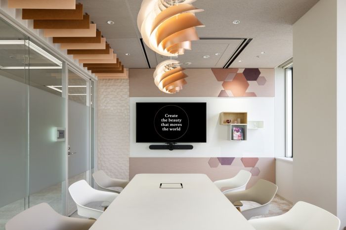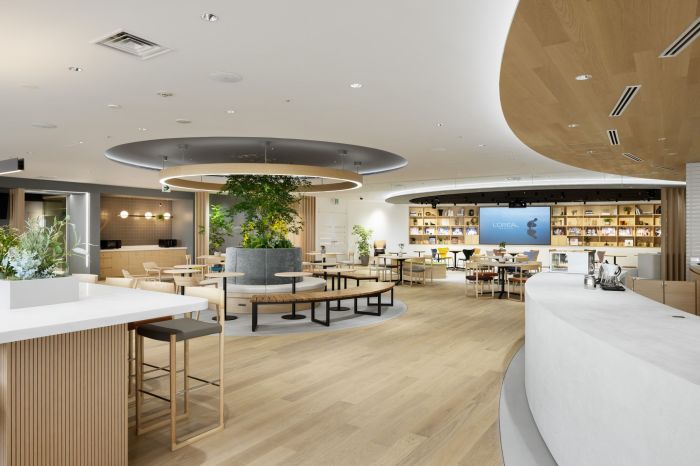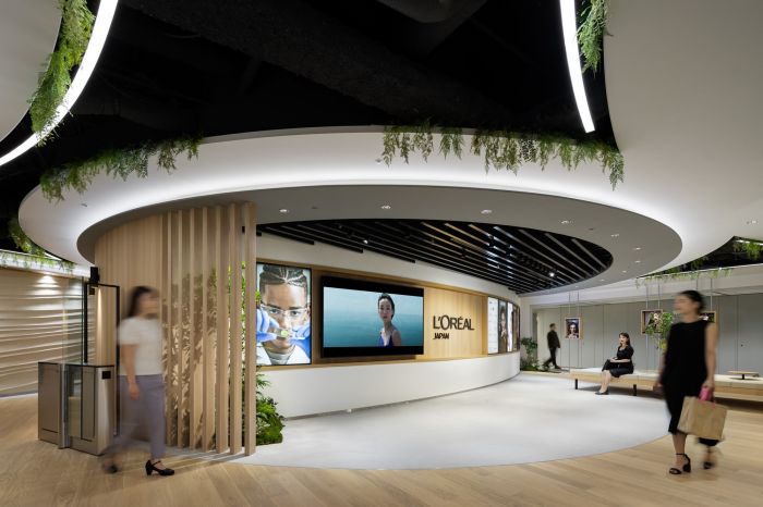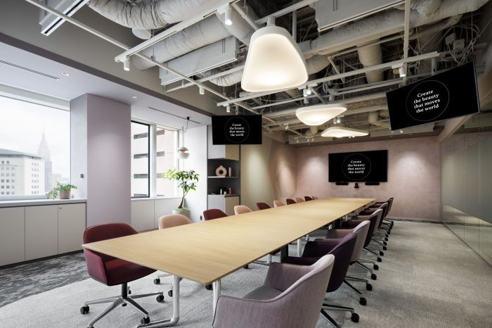 這是一個(gè)化妝品品牌的辦公室,有6300方的面積。辦公室采用了傳統(tǒng)美學(xué)的四季、紋理、家具和裝飾。辦公室采用了活動(dòng)式工作模式,以支持新的工作方式,重視員工的獨(dú)立性和多樣性,并將混合辦公作為主要前提。