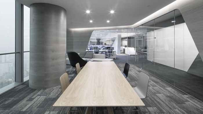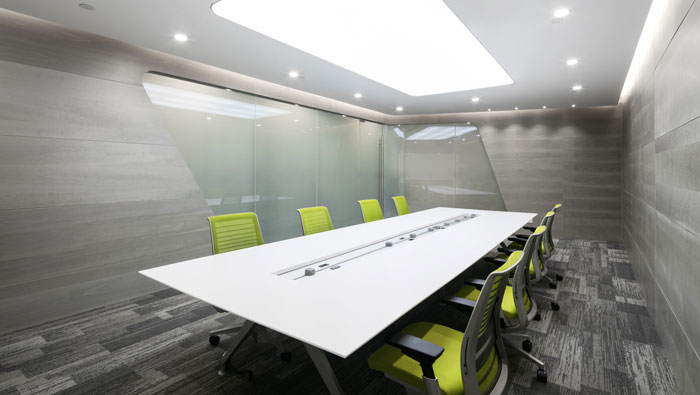 ?  會議室的設計:灰色的地毯加上柔柔的燈光,讓整個空間顯得格外輕松,灰色猶如似亮非亮,燈光代表似亮非亮已經成為過去,這表示著事情已經解決,設計師希望通過這樣巧妙的設計,為會議的開展提供一絲助力,讓人、空間、設計可以合為一體。