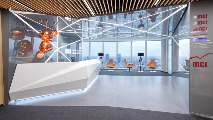 前臺接待區域的設計:當客戶進入空間之后,首先感受到的就是空間的大氣與明亮,在設計師看來第一印象非常重要,故此設計師希望通過設計師的設計,讓客戶感受到企業的實力,同時客戶可以透過窗戶欣賞到整個城市的美景,在這里本身就是一種享受,在這里人的視野會越來越寬廣,對于企業未來的發展十分重要。