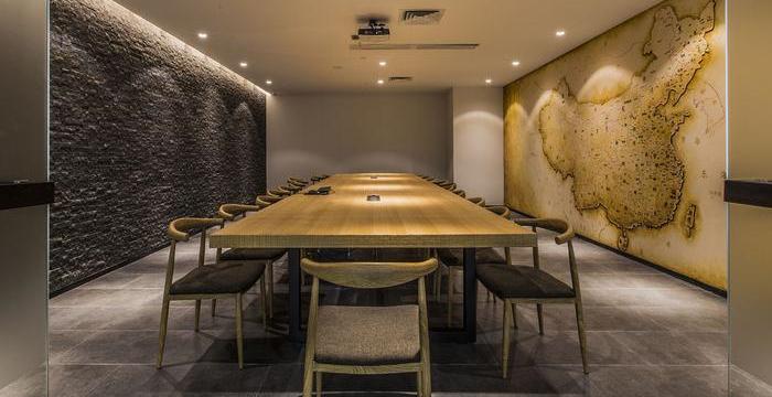 CEO辦公室非常簡潔。空間風(fēng)格通過展示家具來突出。整個(gè)木制辦公桌與新的中國家具相呼應(yīng),而定制的黑色鐵板書架則極為現(xiàn)代。整個(gè)空間呈現(xiàn)出東方現(xiàn)代禪宗風(fēng)格的氛圍。