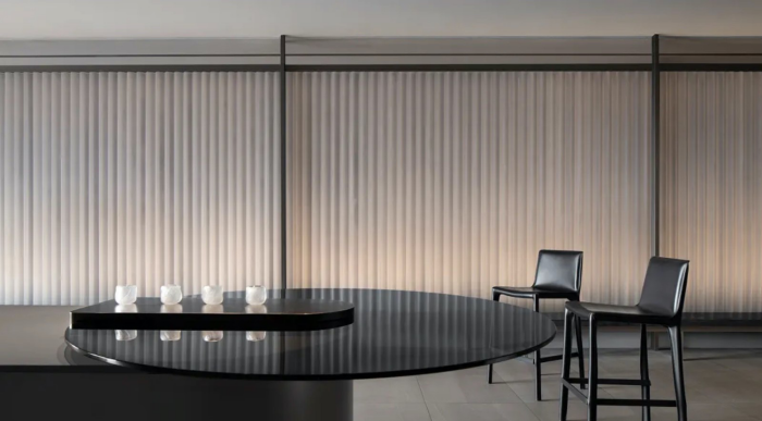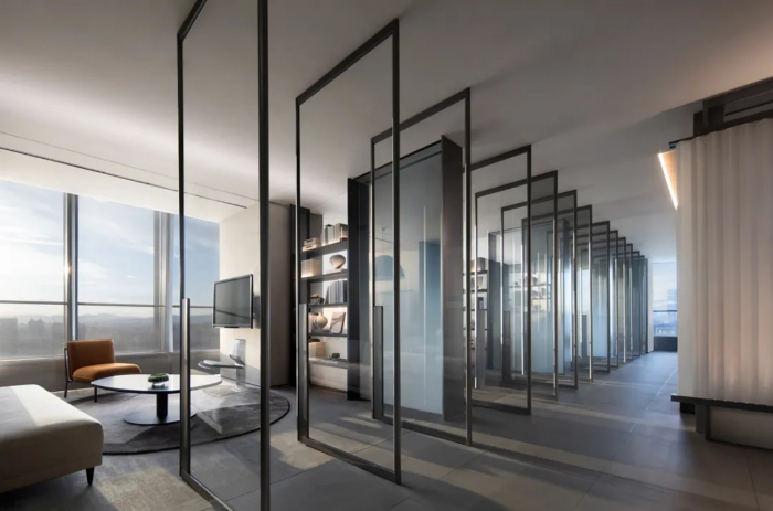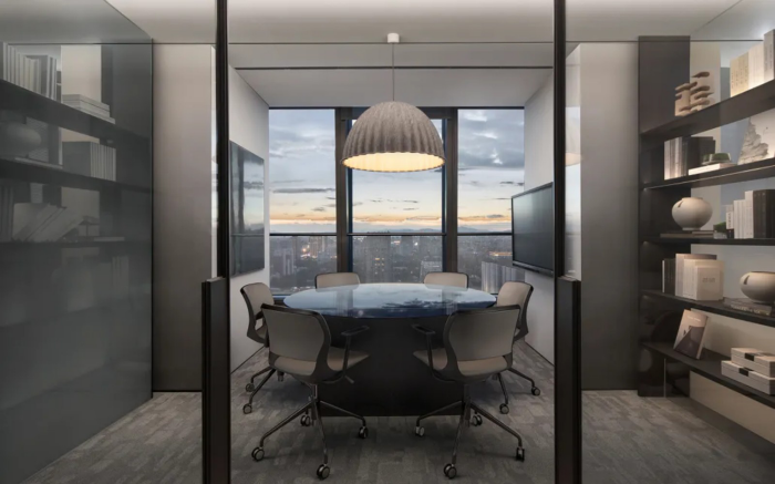 走廊承擔休息與公司分享的場所,活動的多重舉辦賦予其多重身份,以體塊成為空間審美品質的鋪墊。多重的東方元素,在體塊空間的對稱與縱深中, 成為銜接東方美學與現代質感的橋梁。