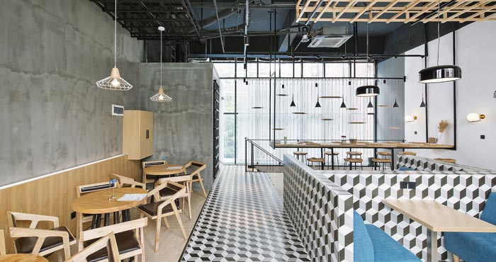 本次為烘焙餐廳設計項目,項目位于萬達廣場附近,占地面積205平方米,建筑分為上下兩層空間,業主希望給客戶提供滿意的服務和就餐環境。