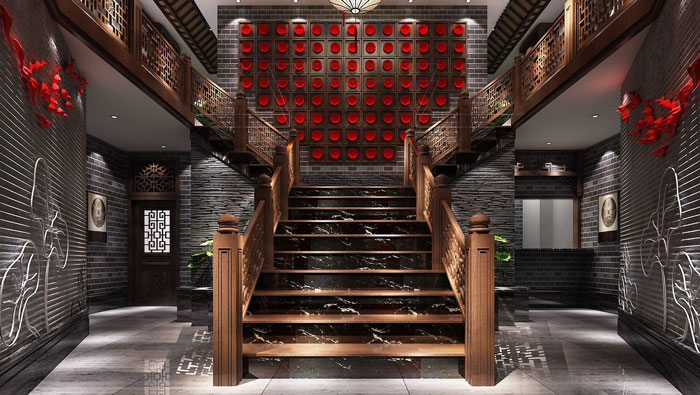 中式川菜館樓梯裝修設計效果圖