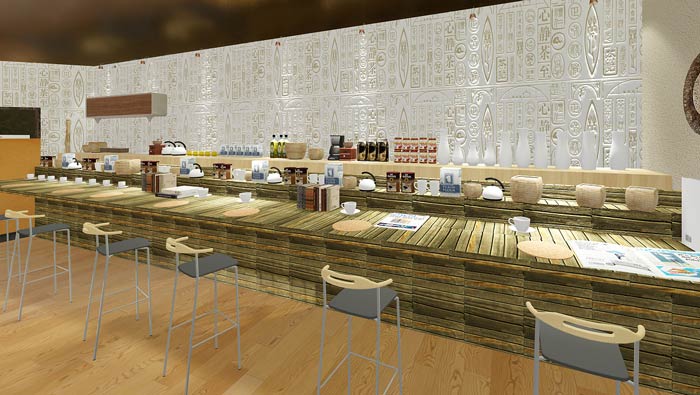 自助茶餐廳餐區設計:茶水、飲料、糕點、咖啡無一不備,這樣做是為了做到有效的融合,每個人的口味、愛好皆不同,業主要做的就是捕捉最大的公約數,以此滿足各類客戶。
