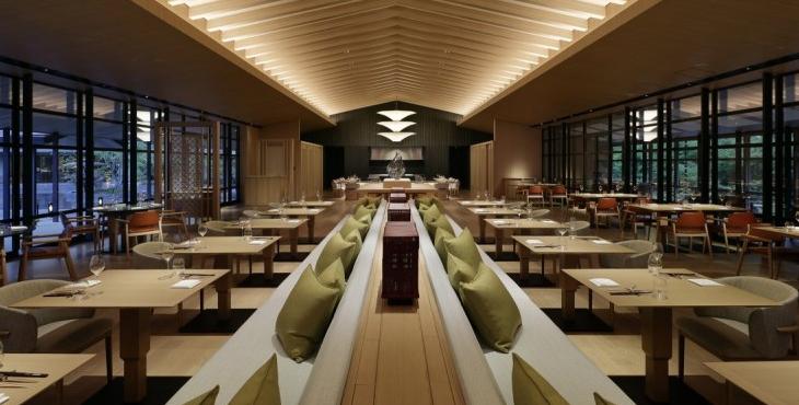 Roku Kyoto度假酒店。當地善出工匠,日本比較有聲譽的寺廟大多集聚于此,匠人精神和宗教元素賦予了酒店獨特的魅力。林立的纖細柱網結構,其設計靈感來自于風中搖曳的竹子,生動場景的建立,使住客與自然產生親密的聯系。