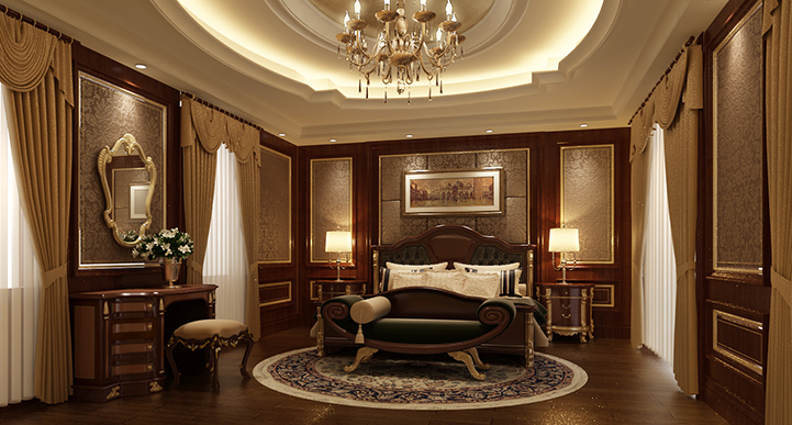 設(shè)計理念:本案的設(shè)計似乎每一處都能給人豪華大氣的感覺,深色咖啡色的搭配,每一處都散發(fā)著刺激人心靈的大氣豪情。尤其是弧線形輪廓與新古典的結(jié)合,重點部位咖啡色的完美搭配,呈現(xiàn)出來的大氣豪華,讓人感受心靈的升華。