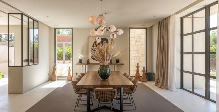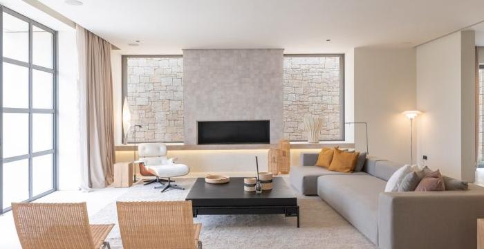 一間現(xiàn)代簡約別墅裝修設(shè)計(jì)案例,空間面積600平方米。它有4間臥室和4間浴室,一間餐廳,一間電視房,一間接待室,一間廚房,一間辦公室。