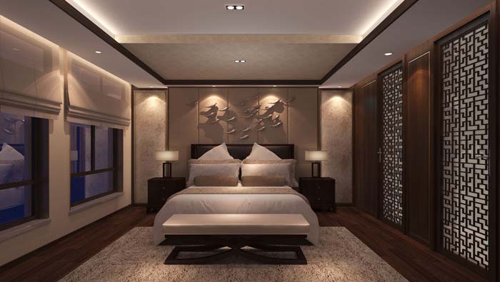 設計理念:此新中式別墅裝修設計,吸取了傳統裝飾‘’形‘神’的特征,糅合現代西式家居的舒適。