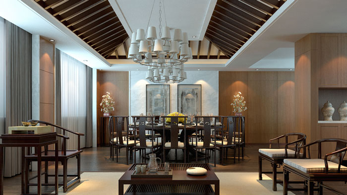 我們將致力于表現(xiàn)中國文化的意境與情趣,而非語言表象。空靈是中國文化特有的表征之一,在本案中,設(shè)計師通過大面處理,結(jié)合黑色鎢鋼線條,力圖體現(xiàn)中國明代的審美意味,家俱也由明式家俱改造提煉而成。