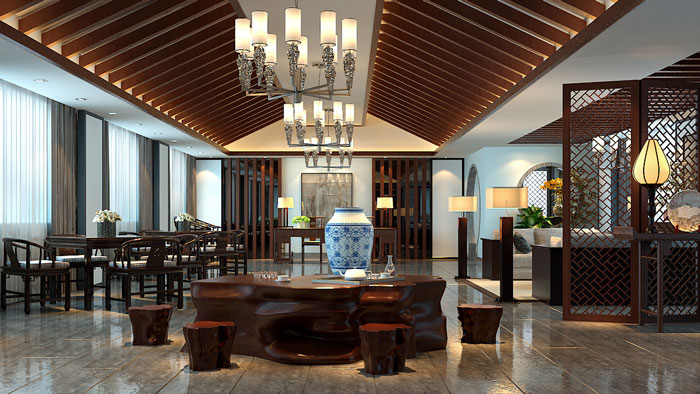 設(shè)計師考慮到建筑空間的原有風(fēng)格及投資方需求,設(shè)計師決定采用新中式手法來打造會所,而非過往高檔場所常見的歐式調(diào)性。