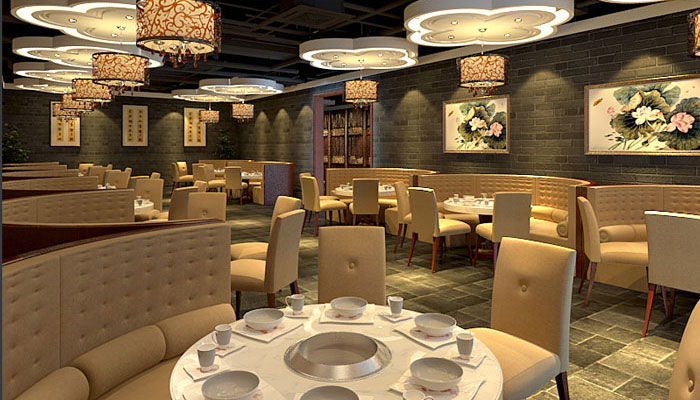 500平方火鍋店大廳裝修設計案例效果圖