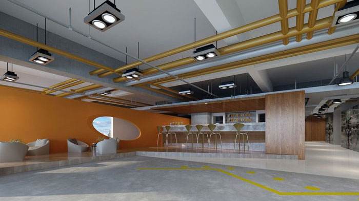 形象墻的設(shè)計(jì),設(shè)計(jì)師采用了橘黃色,這樣會(huì)更加醒目,讓形象墻的功能作用可以得到最大化開(kāi)發(fā)和利用。