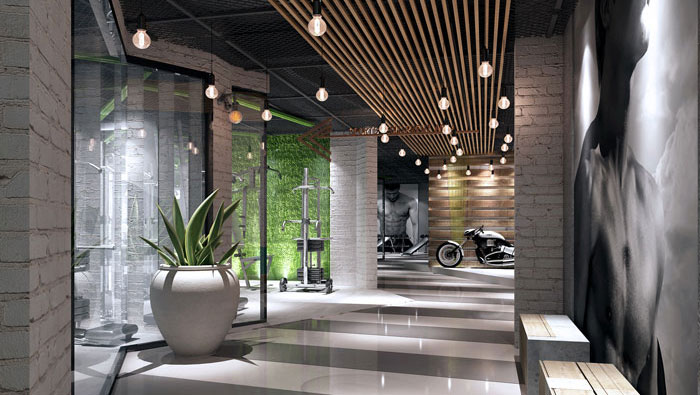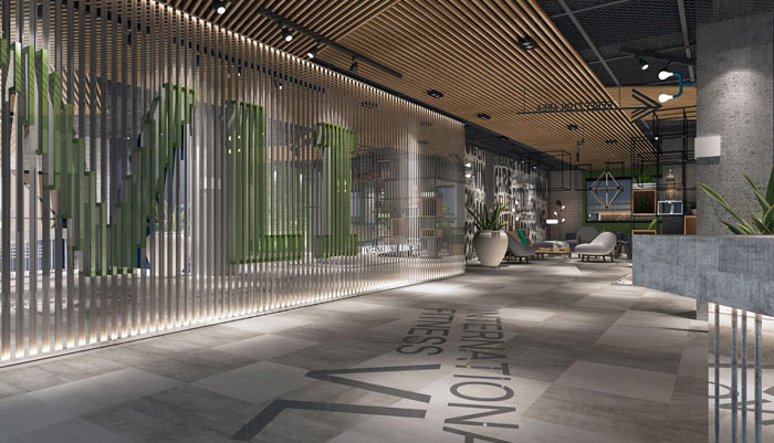 在室內(nèi)空間中,主色大面積采用大地色(大地灰),不但最具親和力,也能夠讓體能訓(xùn)練者在運(yùn)動(dòng)中逐漸找到運(yùn)動(dòng)的節(jié)奏,同時(shí)可以讓瑜伽類安靜的運(yùn)動(dòng)得到一種精神的放松。
