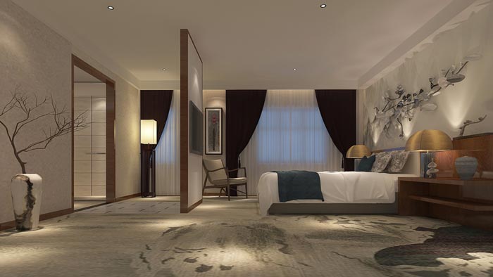 本次為新中式精品酒店裝修設(shè)計(jì)項(xiàng)目,此次設(shè)計(jì)在中式的基礎(chǔ)上加入了現(xiàn)代元素,表達(dá)對(duì)清雅含蓄、端莊豐華的東方式精神境界的追求,因?yàn)樵谂c客戶的交流中,設(shè)計(jì)師與客戶一致在現(xiàn)代物質(zhì)橫流的時(shí)代,讓人慢下來、靜下來是當(dāng)務(wù)之急,也是未來酒店發(fā)展的趨勢(shì)。