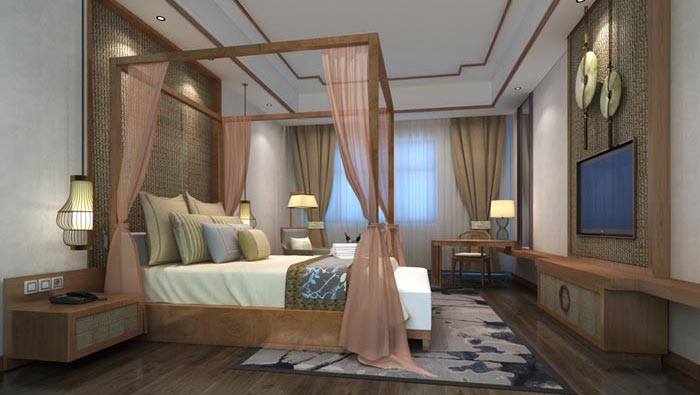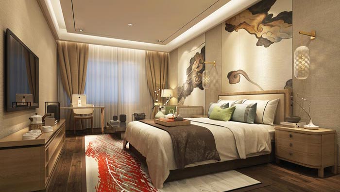 中式風格精品酒店客房裝修設計案例效果圖