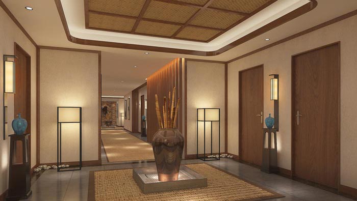 中式風格精品酒店過道裝修設計案例效果圖