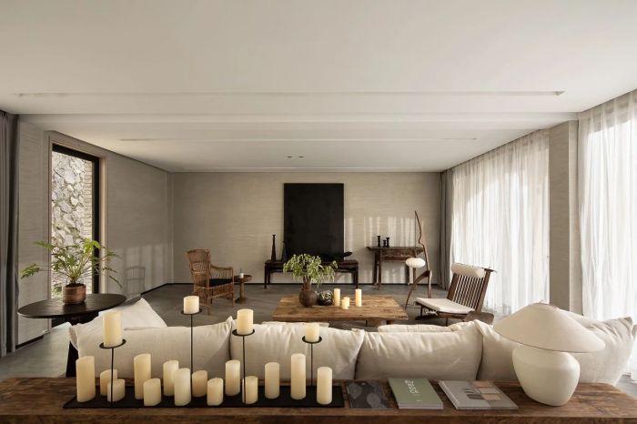秉持著對自然的崇敬之情,俯瞰整個民宿空間,以中間的一片方形水池卡座散開,對應著傳統“天圓地方”的概念,充滿著儀式感。