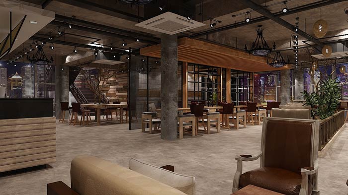 本次為咖啡館裝修設計方案,設計風格采用工業風格,之所以采用工業風,是業主希望給客戶營造一個輕松、愉悅的空間氛圍,整個咖啡館空間自成一體,客戶在這里可以休息、可以學習、可以談天說地,這里為客戶打造一個偷得半日閑的空間,讓客戶愛上這里。