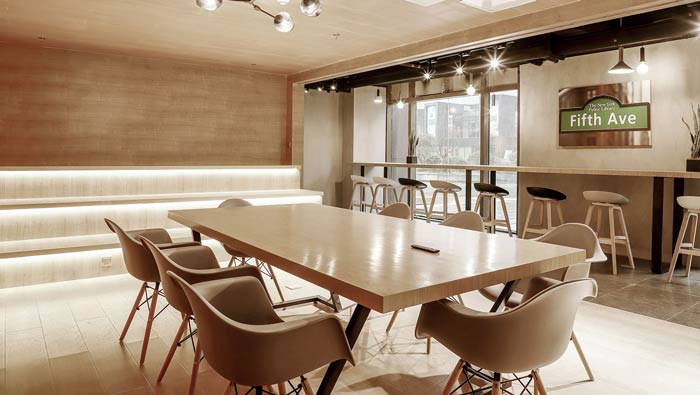 咖啡店共享空間設(shè)計:設(shè)計師在咖啡店的基礎(chǔ)之上做了延伸,設(shè)計師希望客戶可以在這里聊天、交流,優(yōu)美的環(huán)境為交流打下基礎(chǔ),延伸是咖啡店的特色所在。