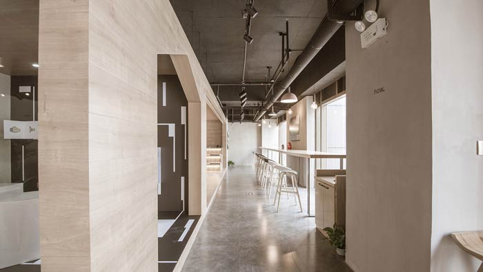 咖啡店走廊設(shè)計:相對封閉的空間在左側(cè),開放的空間在右側(cè),過道將封閉空間與開放空間連接在一起,暢通的過道承載起整個空間的運作。