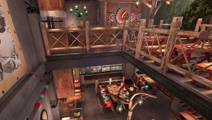 原始燒烤店二樓餐區(qū)裝修設計效果圖