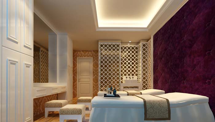 設計師通過巧妙的手法將大理石、肌理漆和墻紙融為一體,這樣的設計令整個美容會所的氛圍統一和諧,達到了家的感覺、溫馨、浪漫的體驗。