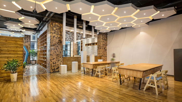 教育培訓教室設計:對于教室的設計,設計師放棄了傳統的設計模式,目的就是希望尋找出適合現在孩子學習的模式,設計師以開放式做為教室的新支點,目的就是希望孩子可以從四方格子中解放出來。
