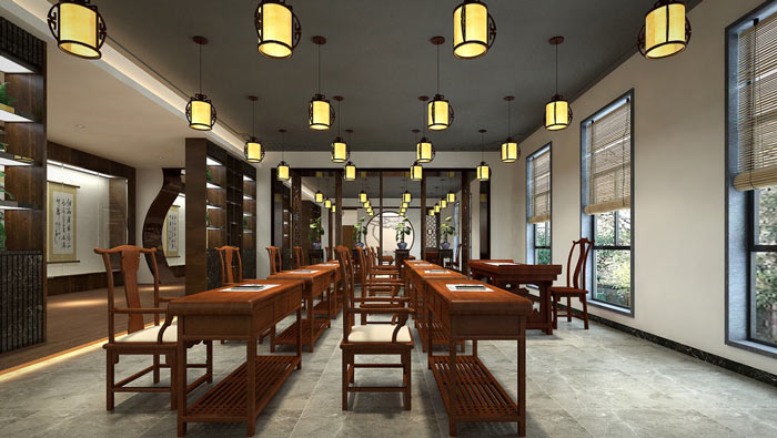 書法教育培訓(xùn)機(jī)構(gòu)教室設(shè)計:在這里我們仿佛回到了古代,先生坐于堂上,學(xué)生坐于堂下,先生盡心教,學(xué)生盡心學(xué),讓我們看到了師生之情,讓我們恢復(fù)傳統(tǒng)美德——尊師重道。