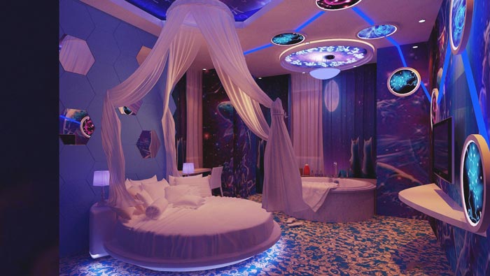 星座客房的設(shè)計(jì):對(duì)于星座相信很多戀人都是趨之若鶩的,設(shè)計(jì)師根據(jù)這個(gè)現(xiàn)象就像打造一個(gè)星座客房,讓戀人之間感受一下星座世界,在這里一切都是那么的夢(mèng)幻,讓我們仿佛漂浮在空間一樣,在這里時(shí)間仿佛靜止了一般,在這里戀人們互相尋找著彼此的星座,相互依偎著。