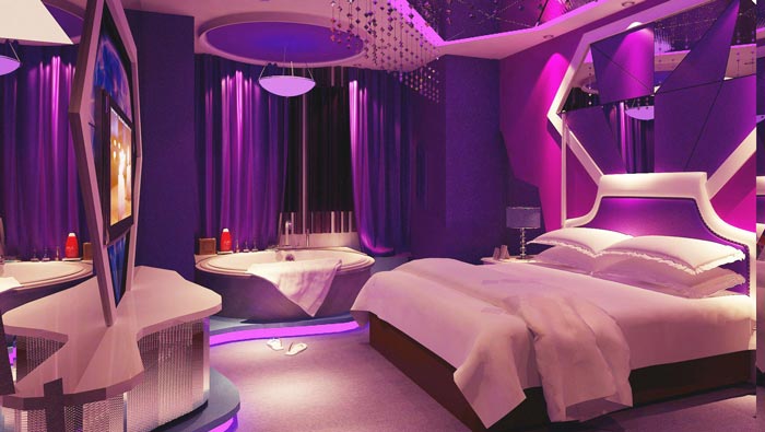 鉆石客房的設(shè)計(jì):有棱有角是整個(gè)空間給人的第一感覺,在這里設(shè)計(jì)師希望讓戀人感受到生活的不易,設(shè)計(jì)師希望戀人不僅在這里感受到溫馨,同時(shí)也能感受到空間深層次的含義,就是生活的棱角如空間的棱角一樣,要學(xué)會(huì)欣賞,在雙方交往的過程中,需要的就是相互欣賞。