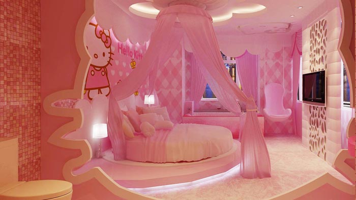 Hello Kitty客房的設(shè)計(jì):對(duì)于女孩來說,最美好的回憶不就是從小陪伴她們的娃娃,在這里設(shè)計(jì)師希望女孩可以找回曾經(jīng)的美好,與男孩子一起分享,在分享之間雙方的情感再進(jìn)一步,這樣的空間也代表著守護(hù)和疼愛,讓男孩子一生都無(wú)法忘記的美好回憶。
