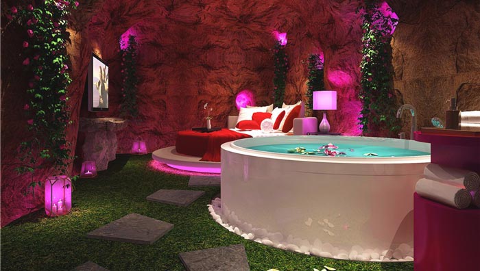 溫泉客房的設計:別樣的洞房花燭夜,都說人一生一中有兩件大事,就是金榜題名時、洞房花燭夜,但是這些對于我們現(xiàn)在的人來說,是那么的陌生、也是那么的向外,相信每一對戀人都有這樣的期許,設計師就是以此情此景為大家?guī)磉@樣的設計,讓戀人在這里完成一次心靈的升華。