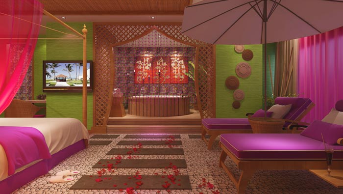 客房的設計:此處給人的感覺仿佛到了馬爾代夫,這也是設計師為哪些沒有條件的戀人準備的,在設計師看來現在很多戀人由于這樣、那樣的事情,無法一起出外旅行,故此設計師希望給彼此一個夢,在這里戀人好似到了馬爾代夫,欣賞到沙灘、海水、日光浴,讓戀人足不出戶享受大美麗的美麗風光。