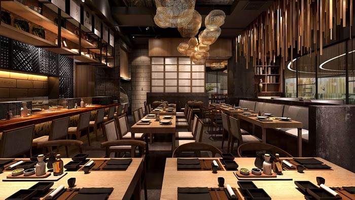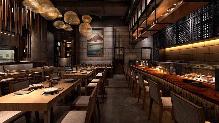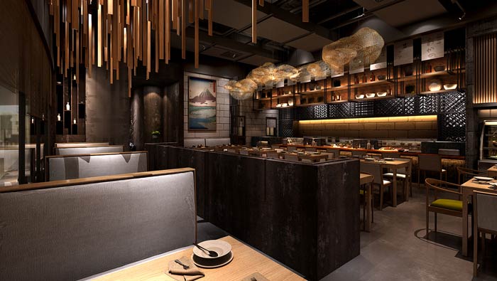 本次為日式料理餐廳裝修設(shè)計(jì)方案,在本次日式餐廳的設(shè)計(jì)中,設(shè)計(jì)師首先需要做的就是將其本土化,任何外來(lái)的東西,不經(jīng)過(guò)改變都是難以生存的,餐飲設(shè)計(jì)更是如此,故此設(shè)計(jì)師在日式餐廳的基礎(chǔ)上,進(jìn)行了調(diào)整與優(yōu)化,讓其更加實(shí)用中國(guó)市場(chǎng),只有如此餐廳才能生存,才能涅槃重生。