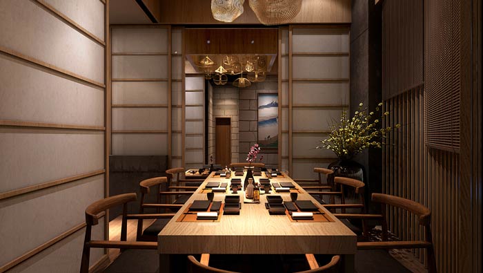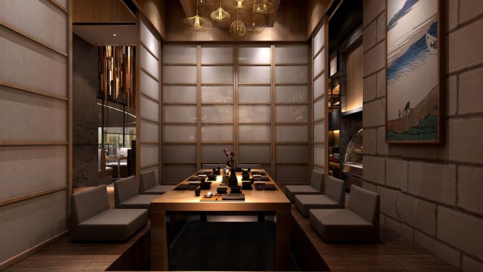 日式料理餐廳包廂設(shè)計(jì):一個(gè)安靜、愜意的空間,是現(xiàn)代人迫切需要的,在這里大家可以遠(yuǎn)離快速發(fā)展的時(shí)代,在這里大家可以喝喝小酒,在這里讓就餐成為一種享受。