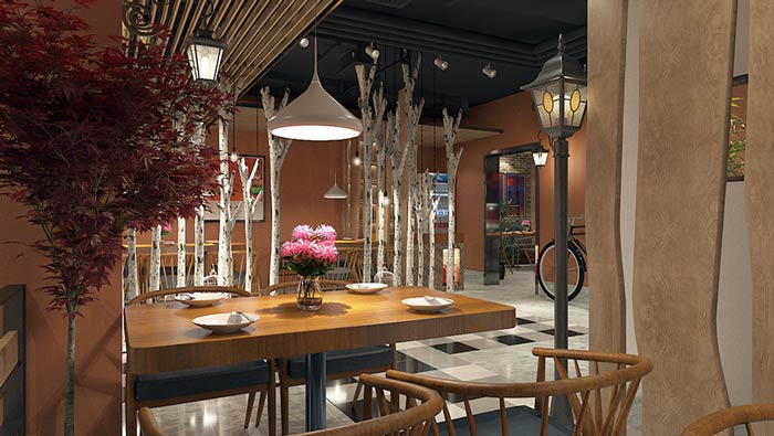 私房菜餐廳裝飾設(shè)計(jì):相信通過“大梁自行車”,很多人都會(huì)想起一些模糊的回憶,這個(gè)時(shí)候在看整個(gè)空間的裝飾,會(huì)不會(huì)有不一樣的感覺,這里給客戶一種似曾相識(shí)的感覺。