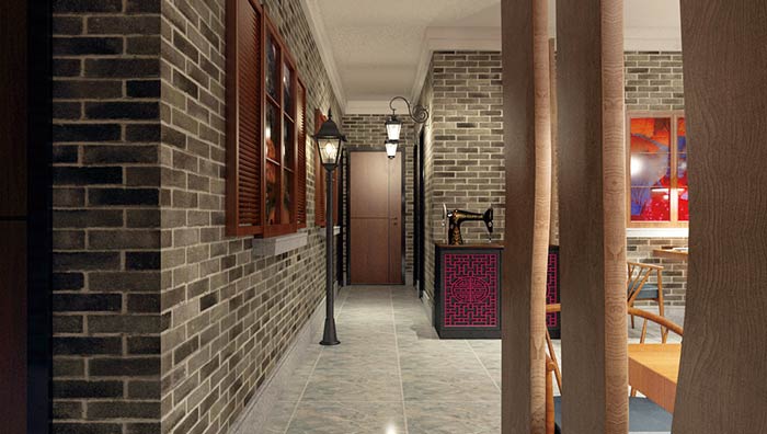 私房菜餐廳餐區(qū)設(shè)計(jì):老式的磚墻空間,會(huì)有一種親切的感覺油然而生,在這樣的空間中吃飯,會(huì)讓很多客戶想起媽媽的手藝,在這里美味、回憶、回憶中的味道,在這里交織。