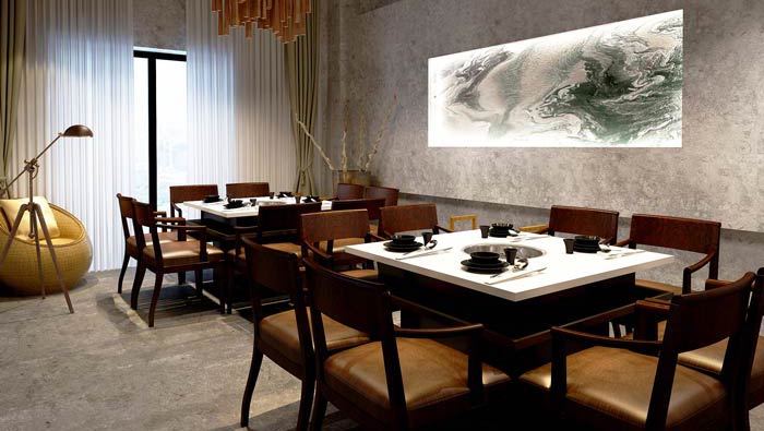 私家菜館進(jìn)門區(qū)裝修設(shè)計(jì):此處給客戶的第一感覺好似茶室,這也是設(shè)計(jì)師希望看到的,當(dāng)客戶在欣賞完美景之后,最想要的就是來一本茶水,以茶為開端正是服務(wù)的開端。
