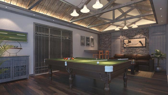 娛樂區域的設計:當朋友們交談感覺乏味的時候,可以在這里打打臺球,相互之間彼此活動一下,室內活動本就不多,再加上此處的條件有限,臺球無疑是最佳的選擇,但是此處的氛圍卻可以完全彌補這樣的缺憾,沒有吵雜的聲音、沒有光污染,有的只是我們在這里,感覺我們好像脫離了世界一般,進入到另外一個維度。