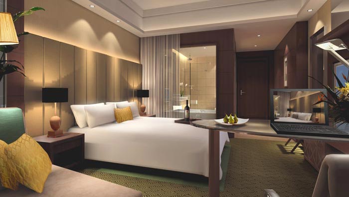 商務大床房的設計:此處屬于酒店的標準間,在這里顧客可以辦公與休息,但是此處的辦公環境不同,讓顧客在愉悅的氛圍中辦公,并支持辦公的各種輸出,以此解決客戶的后顧之憂,當顧客品著一杯紅酒休息和辦公,相信這樣的一種氛圍對人來說本身就是一種享受。