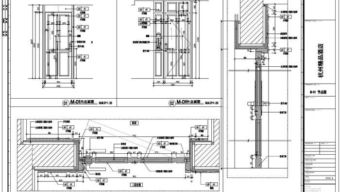 杭州精品酒店室內裝飾工程深化設計施工圖01號門內、外立面刨面圖01-04