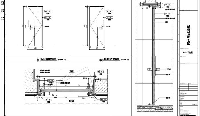 杭州精品酒店室內裝飾工程深化設計施工圖02號門內、外立面刨面圖01-03