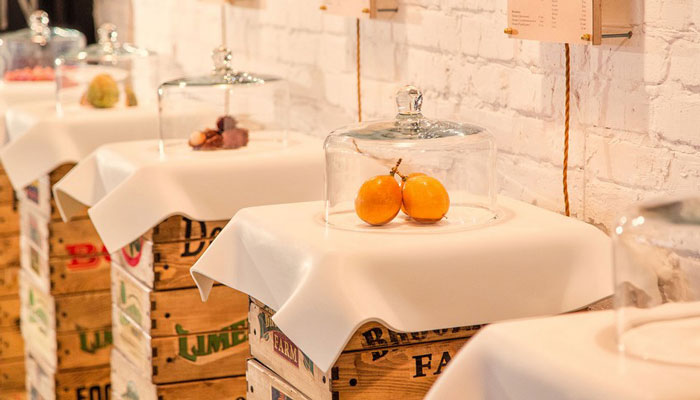 復古風格水果店鋪餐桌區域裝修設計案例效果圖