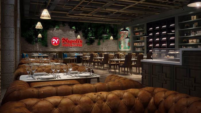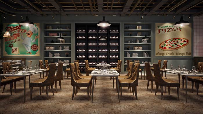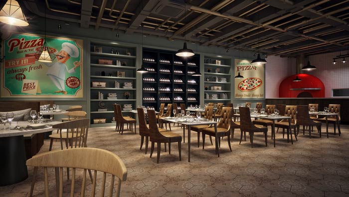本次披薩西餐廳裝修設計方案講解到此結束,設計師在設計中盡量的突出多元的屬性,目的就是為了避免單一的現象,設計師希望為餐廳打造一個包容、多元的就餐環境。