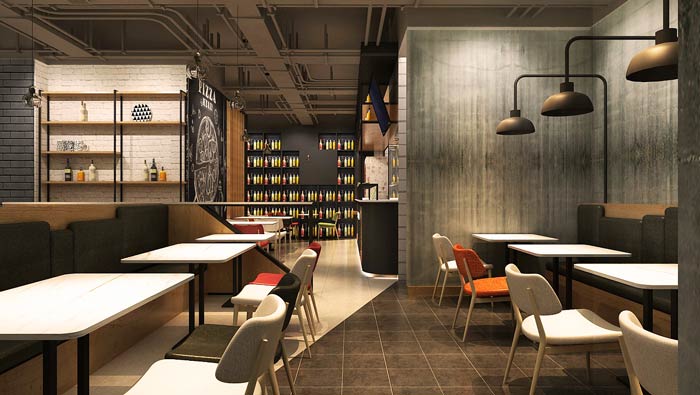 本次為主題西餐廳裝修設計方案,餐廳只經營三樣,一樣是披薩,一樣是小吃,一樣是飲品,披薩做為餐廳的主營餐品,小吃、飲品做為飲食的配套存在,設計師在西餐廳設計中,以披薩為設計主題,以小吃、飲品為輔助,設計師希望為企業打造一個優質的西餐廳設計。