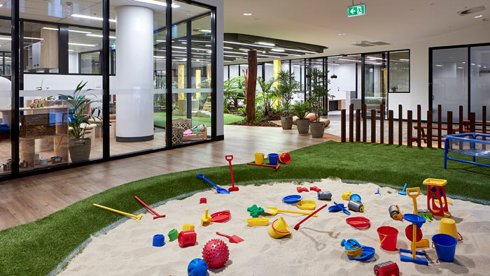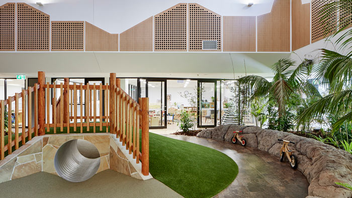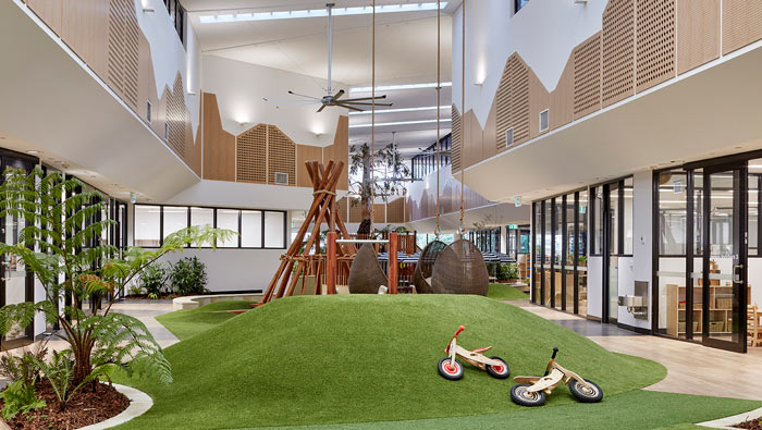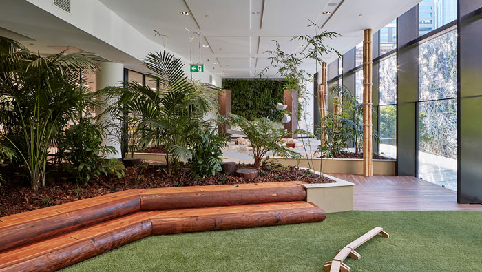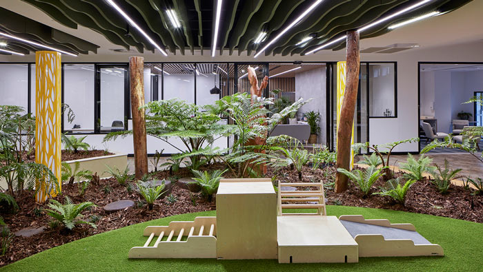 早教中心綠植設(shè)計(jì):現(xiàn)在的小朋友已經(jīng)鮮少能夠見到泥土地了,設(shè)計(jì)師希望通過綠植室內(nèi)的栽植,讓孩子回歸自然、回歸先天,讓孩子在這樣的空間中感受到自然的魅力。
