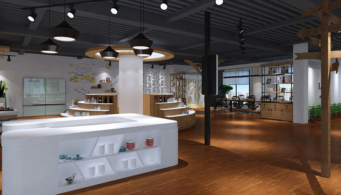 設計師希望體現一種休閑而有品味的展覽展示氛圍效果,通過裝修進而體現企業文化和產品特色。