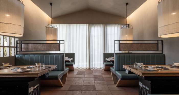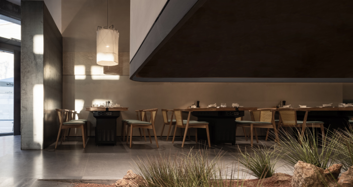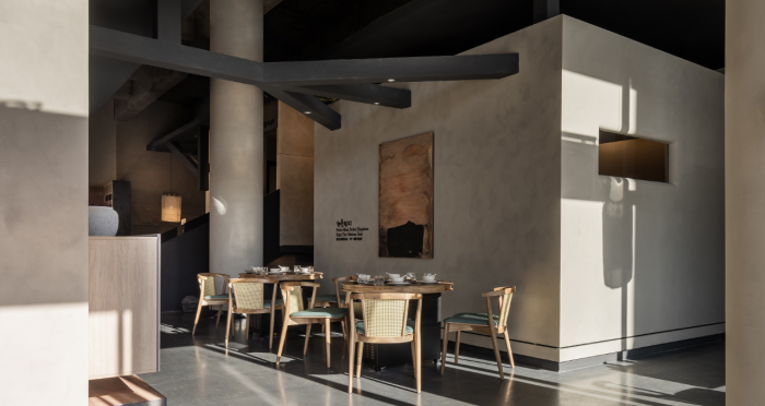 這是“侘寂煙火-如熹RUXI”餐廳的設(shè)計(jì)理念和品牌故事。餐廳以打邊爐為核心,強(qiáng)調(diào)“侘寂”美學(xué)的孤寂與市井煙火的對(duì)比。設(shè)計(jì)師通過將空間化零為整、打通室內(nèi)邊界,營(yíng)造出人與自然之間的深層關(guān)系。空間設(shè)計(jì)以“侘寂煙火”為主題,運(yùn)用開放界面和透明封閉界面,將自然光引入作為主要照明方式,創(chuàng)造出豐富的光影韻律。設(shè)計(jì)希望通過空間的沉浸感讓食客放松下來,享受當(dāng)下。整體空間設(shè)計(jì)質(zhì)樸自然,融入了水墨元素,增加了調(diào)性和趣味性。通過在“侘寂”中感受人間煙火氣,設(shè)計(jì)希望重新尋找通往松弛和諧的理想生活。
