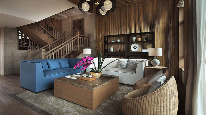 取材自然是東南亞家居最大的特點,由于地處多雨富饒的熱帶,南亞家具大多就地取材,東南亞風格的家具設計往往拋棄了復雜的裝飾線條,取而代之以簡單整潔的設計,為家具營造清涼舒適的感覺。