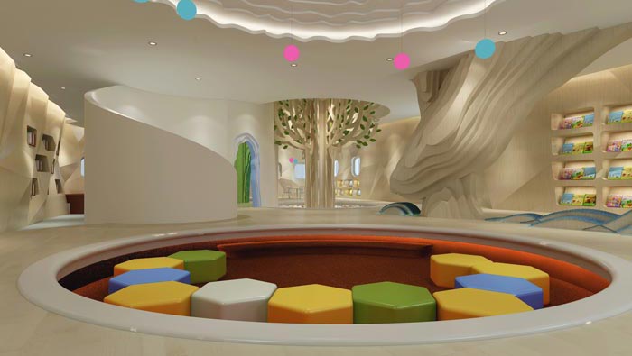 本次為早教繪本館裝修設計項目,繪本館也是在最近幾年開始普及大中城市,這對于繪本館的設計就有了新的要求,由于繪本館的對象多是0-12歲的兒童,這就要求設計師要多考慮到孩子的安全度與舒適度,同時裝修也要溫馨、活潑,引發幼兒的興趣,如此才能在眾多繪本館脫穎而出。